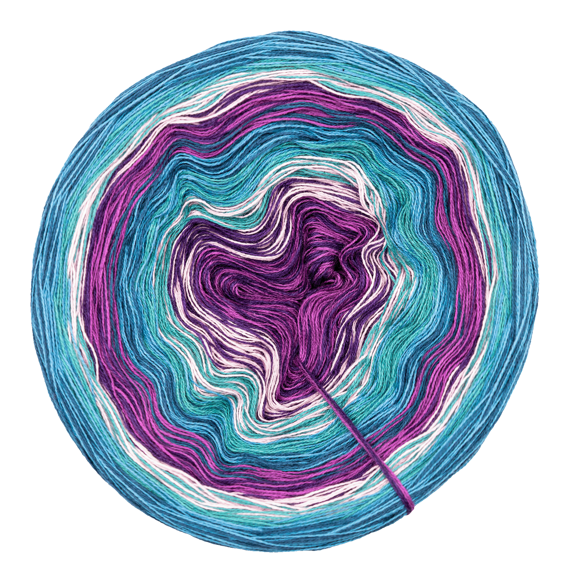 Farbverlaufsgarn, 4-fädig, in verschiedenen Lauflängen, zum Häkeln oder Stricken.