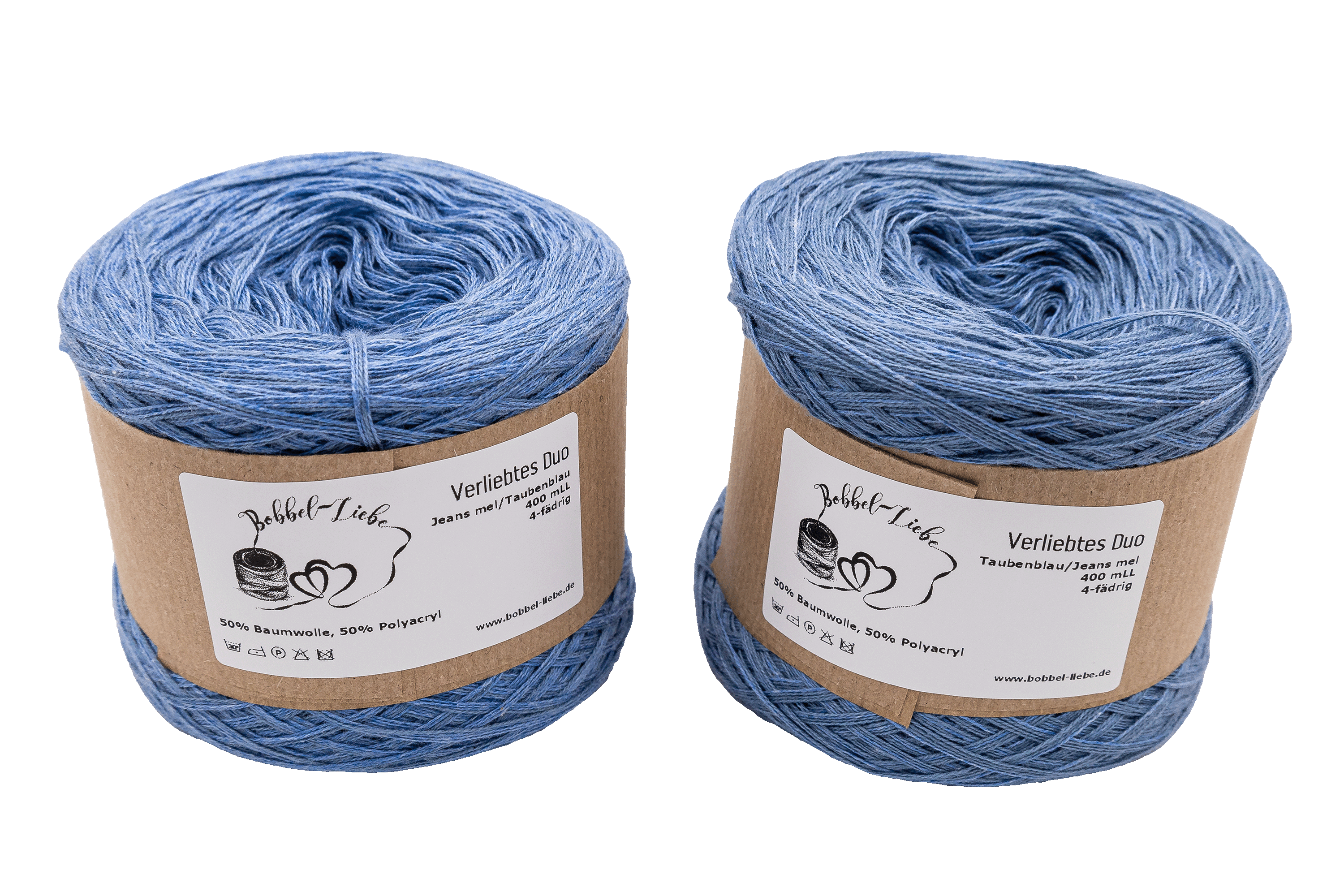 Unsere Verliebten Duo sind Ton-in-Ton Bobbel, 4-fädig. Du kannst damit besonders schöne schlichte, aber nicht einfarbige, Tücher und Schals arbeiten oder auch wunderbare Basicteile wie Pullover und Jacken. Die einzelnen Fäden liegen nebeneinander und sind nicht verzwirnt.
